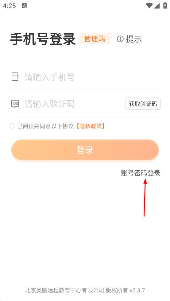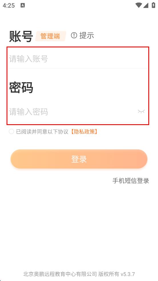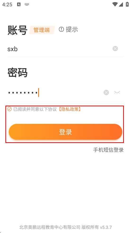 4、勾選已閱讀并同意以下協(xié)議隱私政策,點(diǎn)擊“登錄”按鈕,完成師訓(xùn)寶APP的賬號(hào)密碼登錄。