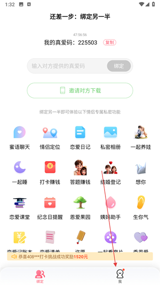 1、打開小恩愛應(yīng)用,點(diǎn)擊界面右下角的我,進(jìn)入個人頁面。