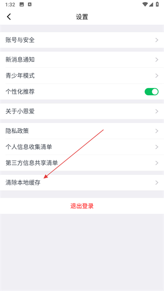 3、在設(shè)置界面里,找到清除本地緩存選項并點(diǎn)擊,彈出確認(rèn)清除的提示框。