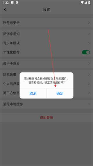 4、在提示框中點(diǎn)擊確定,即可清除小恩愛緩存在本地的圖片、語音和視頻等緩存數(shù)據(jù)。