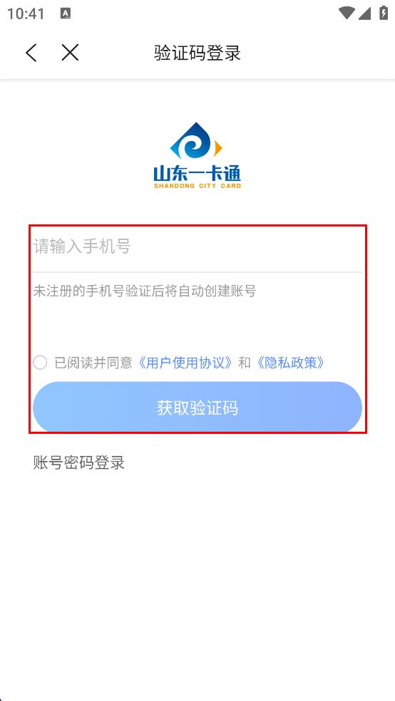 4、輸入手機(jī)號(hào),勾選已閱讀并同意相關(guān)協(xié)議和政策后,點(diǎn)擊“獲取驗(yàn)證碼”,輸入收到的驗(yàn)證碼完成登錄。