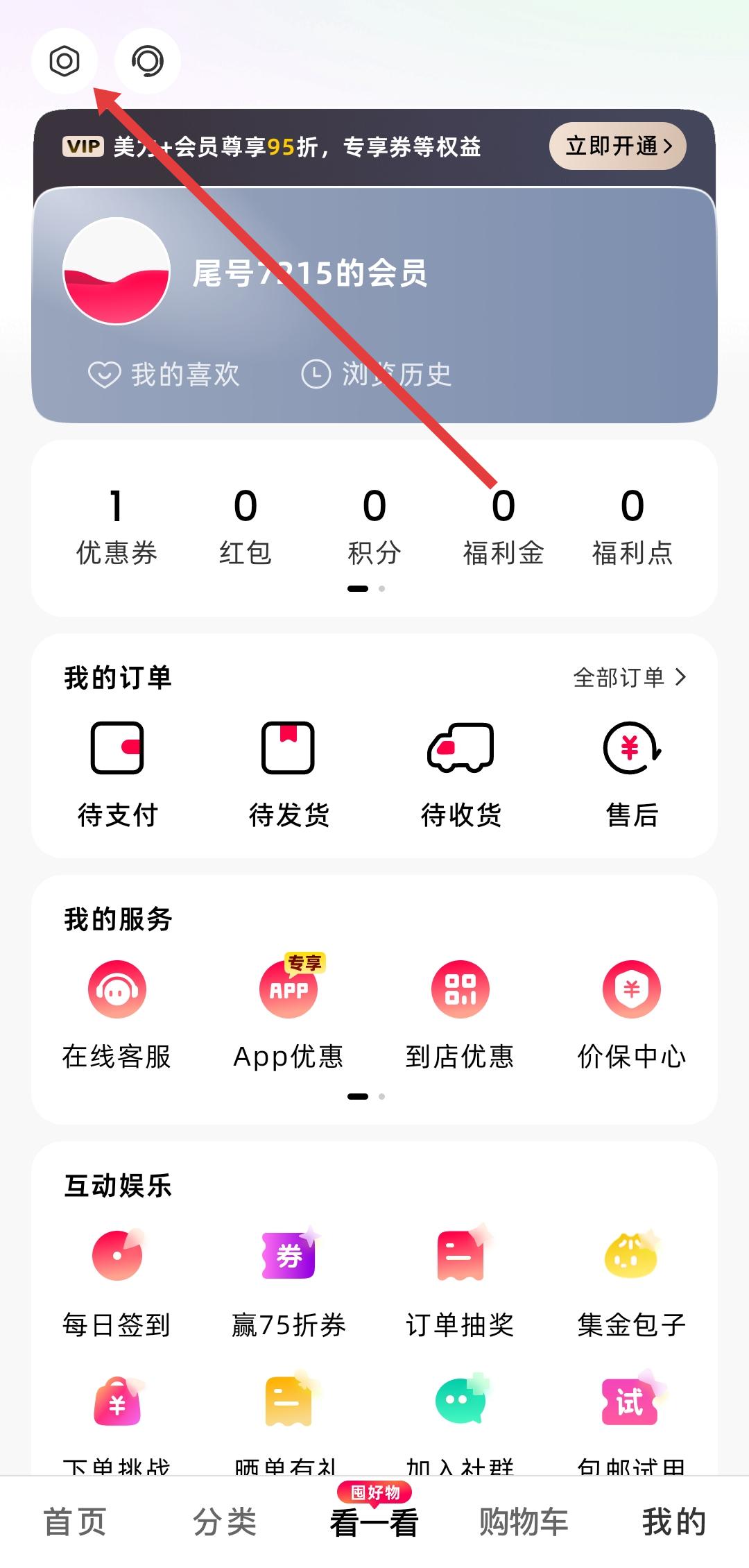 1、在中免日上我的頁面,點擊左上角設(shè)置圖標,進入設(shè)置界面。