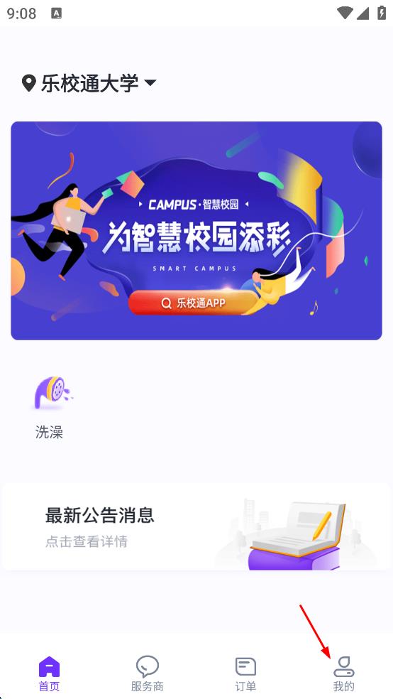 3、在樂(lè)校通首頁(yè),點(diǎn)擊右下角我的,進(jìn)入個(gè)人中心頁(yè)面。