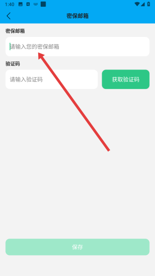 3、在密保郵箱頁(yè)面,點(diǎn)擊輸入框填寫(xiě)郵箱以獲取驗(yàn)證碼。