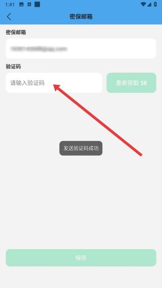 4、在收到驗(yàn)證碼,點(diǎn)擊輸入框填寫(xiě)驗(yàn)證碼后,即可完成密保郵箱的設(shè)置。