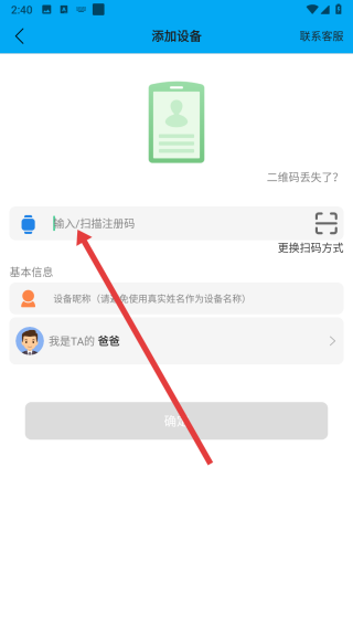 4、在進(jìn)入到添加設(shè)備頁(yè)面后,點(diǎn)擊輸入框填寫(xiě)學(xué)生卡對(duì)應(yīng)編號(hào)信息后,完成添加操作。