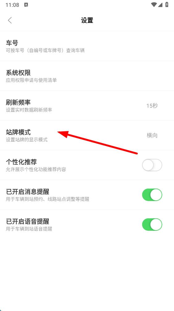 3、在設置界面里,找到站牌模式選項并點擊,會彈出選擇站牌模式的窗口。