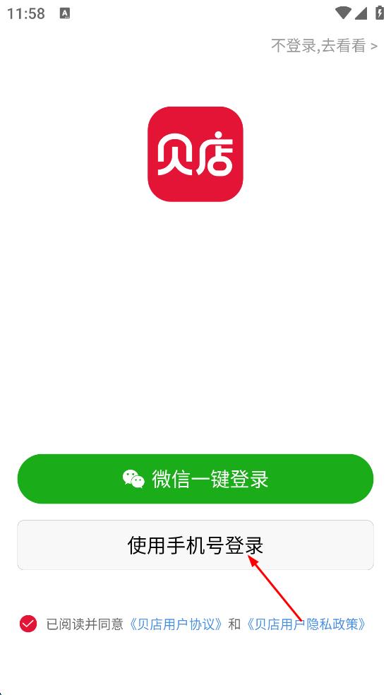 2、進(jìn)入登錄選擇頁面,點(diǎn)擊“使用手機(jī)號登錄”,進(jìn)入手機(jī)號登錄界面。