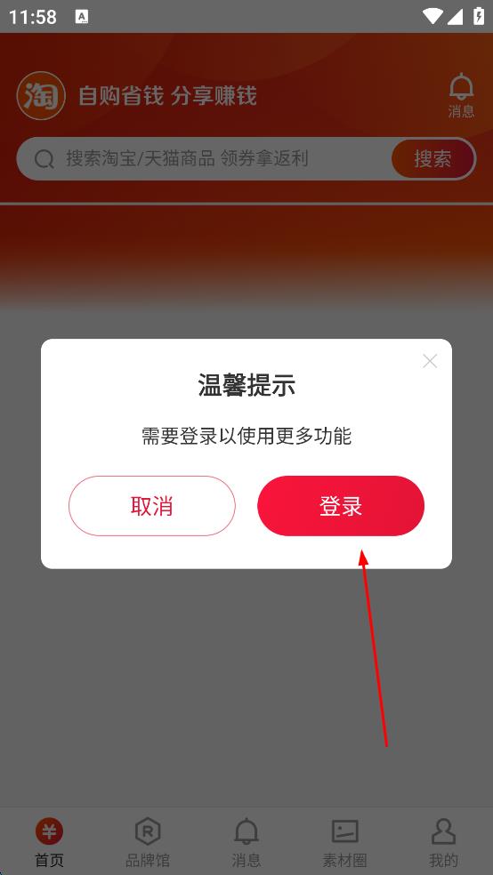 1、打開貝店APP,點(diǎn)擊頁面右下角“我的”,彈出溫馨提示框后點(diǎn)擊“登錄”。
