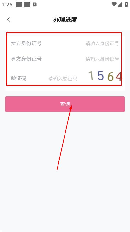 4、進入辦理進度查詢頁面,輸入女方身份證號、男方身份證號以及驗證碼,點擊查詢按鈕,即可查看準生證辦理結(jié)果。