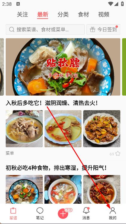 1、打開(kāi)美食天下,點(diǎn)擊頁(yè)面右下角的我的選項(xiàng)。