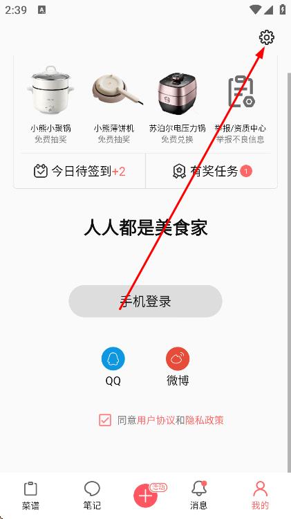 2、進(jìn)入我的頁(yè)面后,點(diǎn)擊右上角的設(shè)置圖標(biāo)。