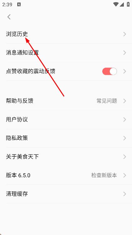 3、在設(shè)置頁(yè)面中,找到并點(diǎn)擊瀏覽歷史選項(xiàng)。