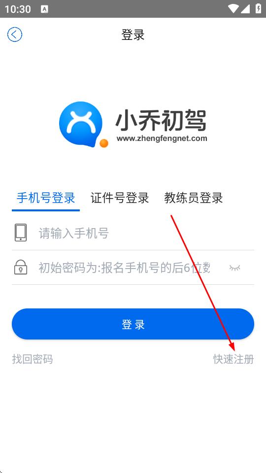 3、進入登錄頁面后,點擊右下角的快速注冊選項。