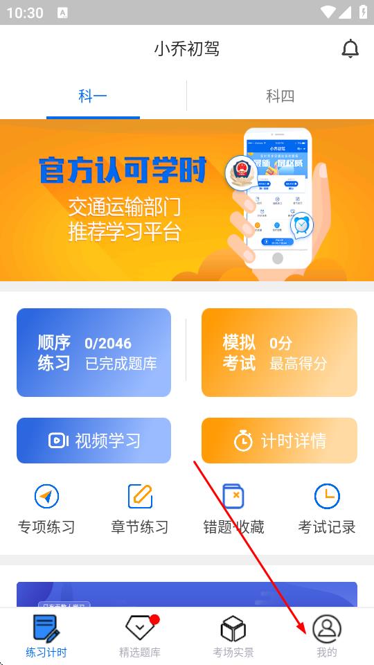 1、打開小喬初駕APP,進入主界面,點擊底部導(dǎo)航欄中的我的。