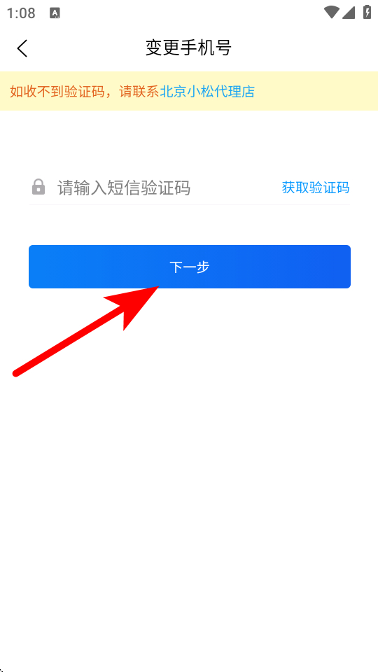 3、在變更手機號頁面,輸入原手機號的短信驗證碼后點擊下一步。