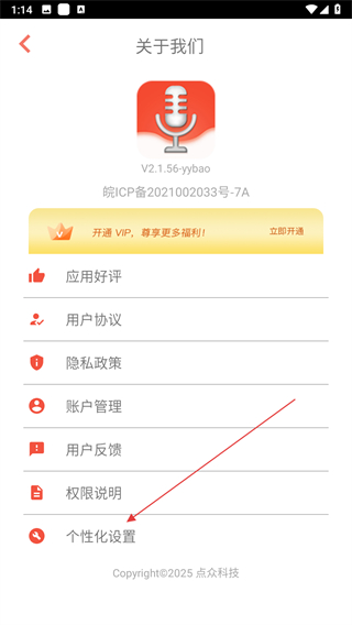 3、在關(guān)于我們頁面里,找到個性化設(shè)置選項并點擊,進入個性化設(shè)置界面。