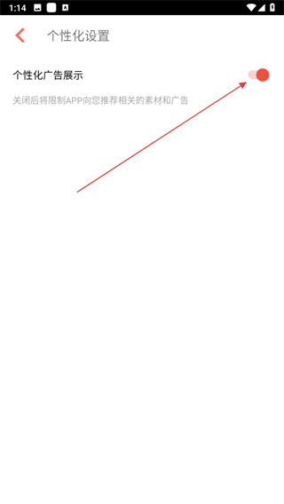 4、在個性化設(shè)置界面中,找到個性化廣告展示選項,點擊其右側(cè)的開關(guān)按鈕。