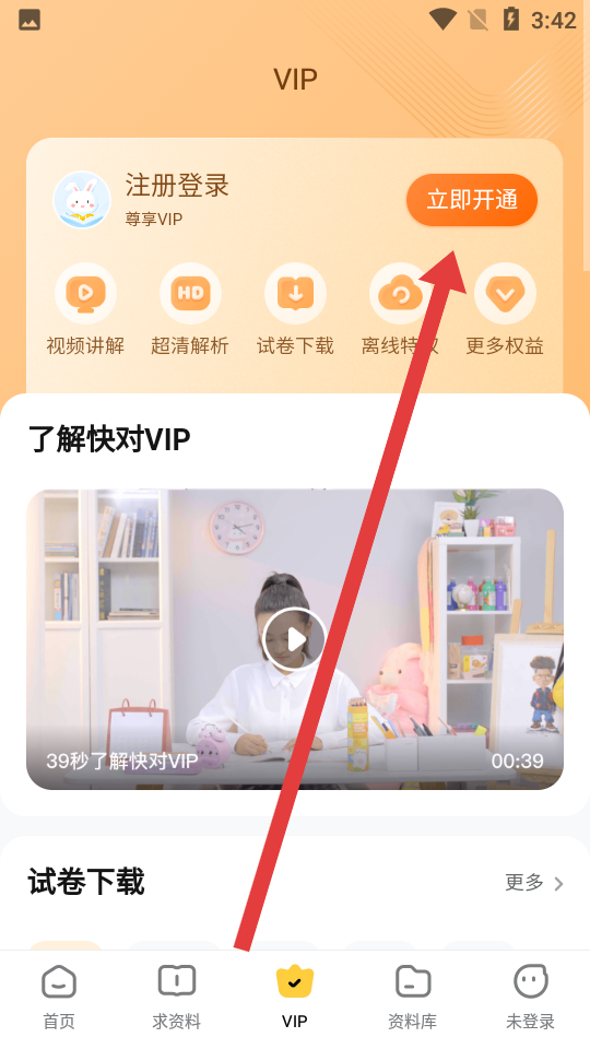 1、打開應(yīng)用后找到VIP專屬頁面,在頁面顯著位置點(diǎn)擊立即開通按鈕,即可開通尊享VIP服務(wù)。