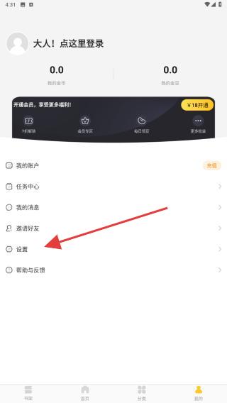 3、進(jìn)入我的頁面內(nèi),點擊設(shè)置的功能按鈕。