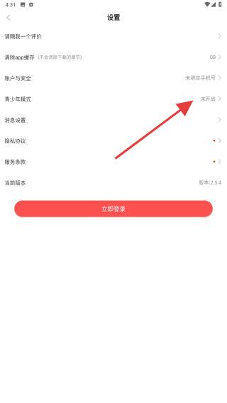 4、在設(shè)置頁面內(nèi),找到并點擊青少年模式,點擊即可開啟。