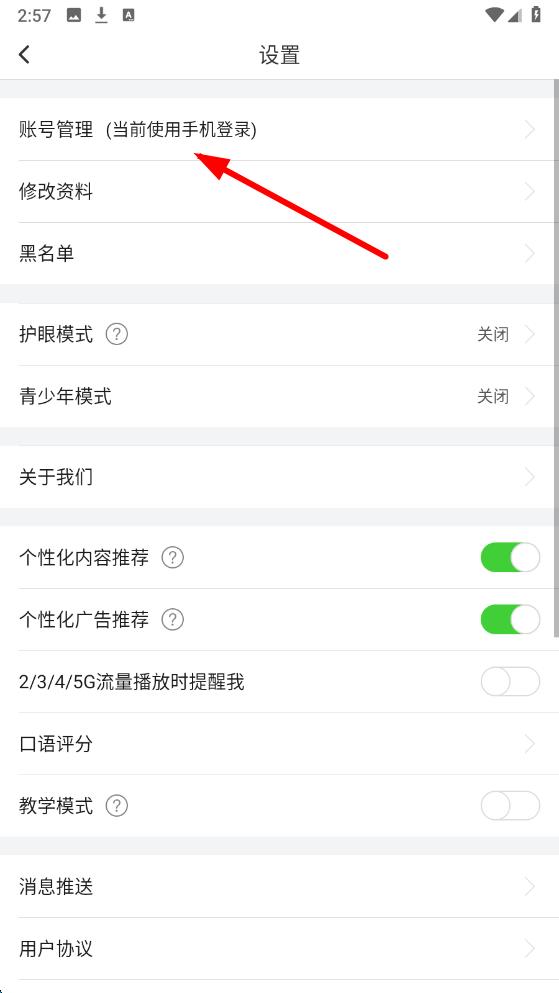 2、在設(shè)置頁面里,找到并點(diǎn)擊賬號(hào)管理的選項(xiàng)按鈕。