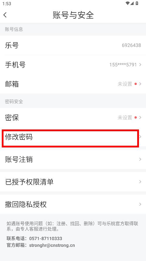 4、進(jìn)入賬號(hào)與安全界面后,點(diǎn)擊修改密碼選項(xiàng),按照提示完成密碼修改操作。