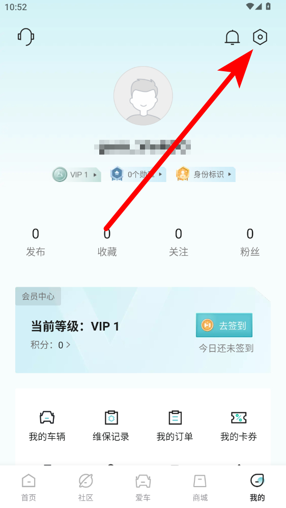 2、在個人頁面,點擊右上角設置圖標,進入設置頁面。