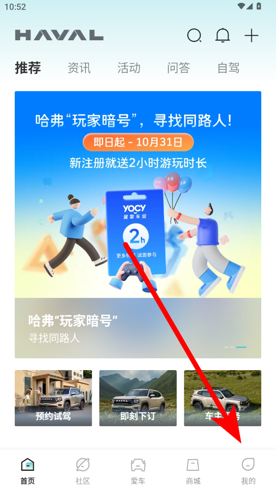 1、在哈弗智家首頁,點擊右下角我的選項,進入個人頁面。