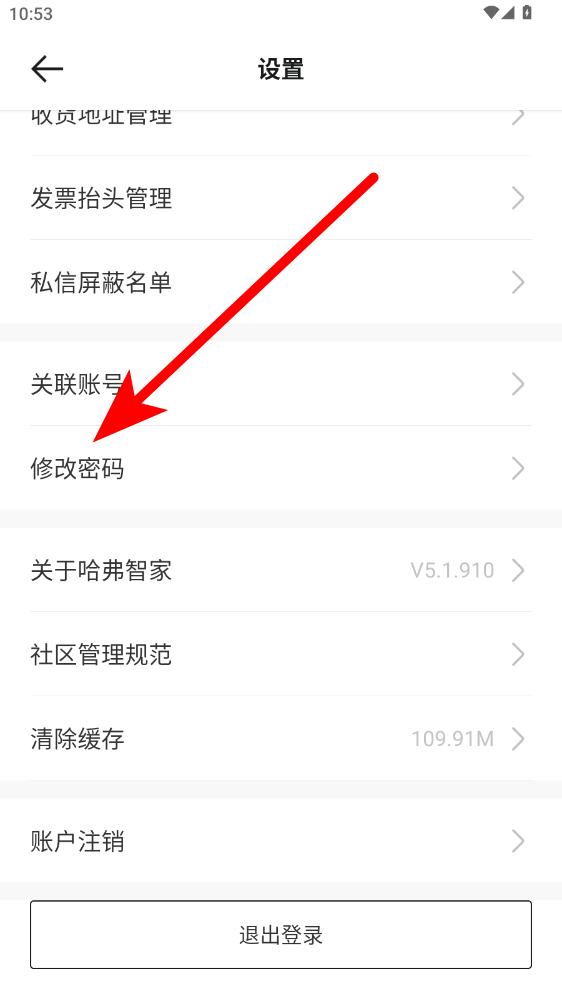 3、在設置頁面,點擊修改密碼選項,進入重置密碼界面。