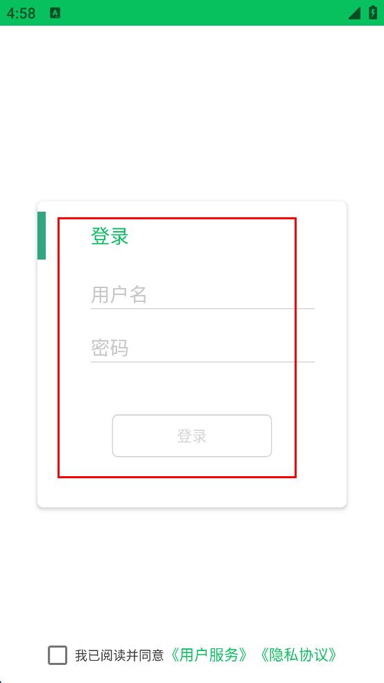 4、在賬號登錄頁面,輸入用戶名,接著輸入密碼,勾選我已閱讀并同意用戶服務(wù),隱私協(xié)議,點擊“登錄”按鈕完成賬號登錄。
