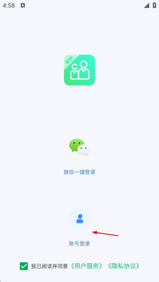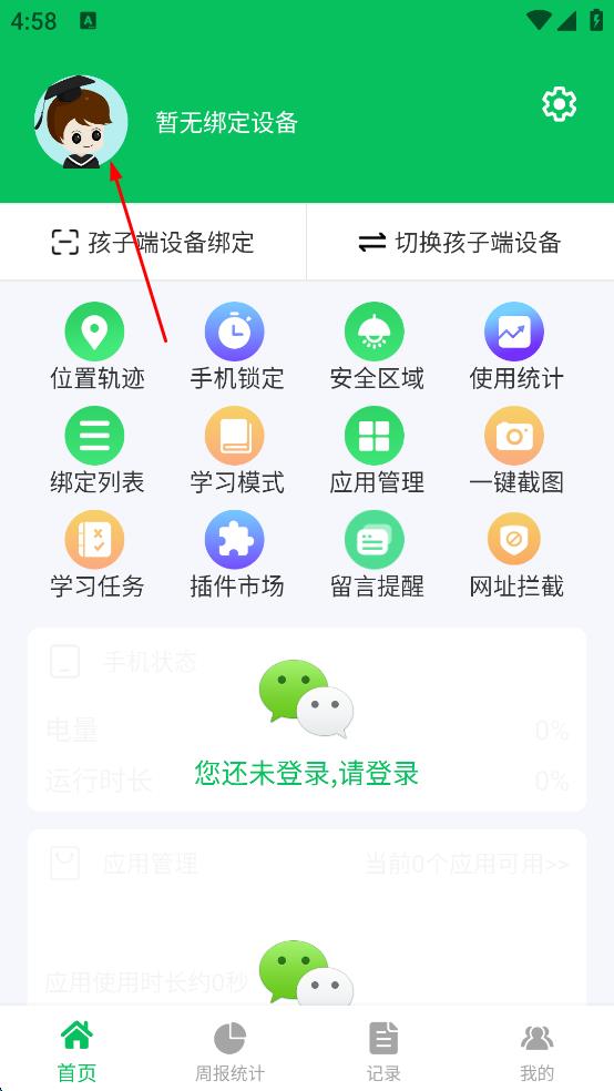 2、在家長端主界面,點擊頭像區(qū)域,進入登錄選擇頁面。