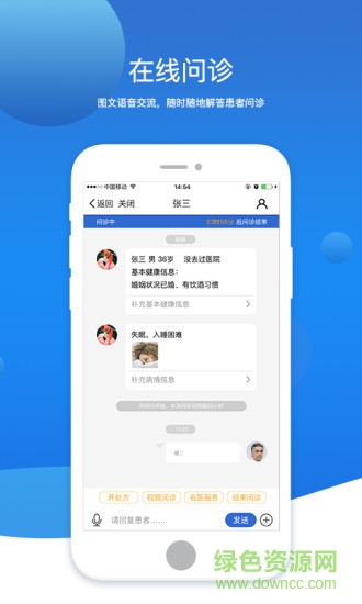 醫(yī)患溝通:醫(yī)生、護士和患者之間可以通過文字、圖片、語音來進行交流,方便醫(yī)生和患者之間進行詳盡的病情溝通。