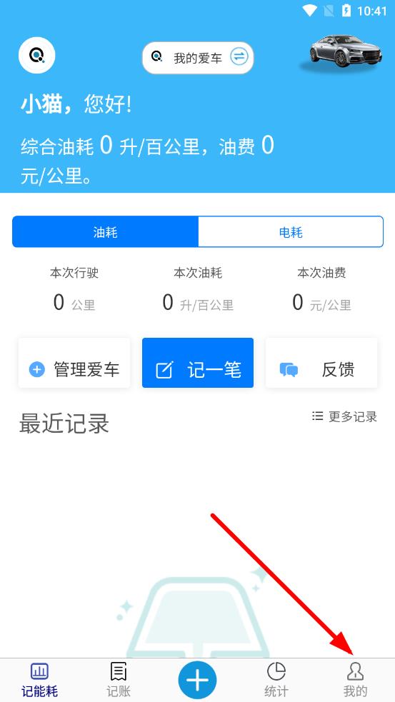 1、打開奇智油耗電耗app,點擊底部導航欄中的我的選項,進入個人設(shè)置界面。