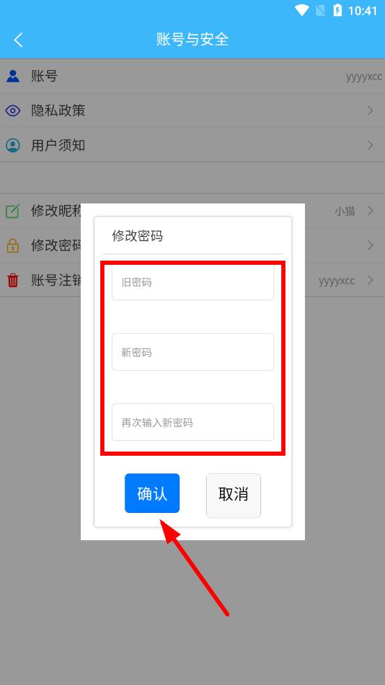 4、在修改密碼窗口中,依次輸入舊密碼、新密碼、再次輸入新密碼,然后點擊確認按鈕,完成密碼修改。