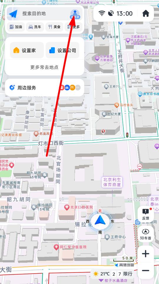 1、在高德地圖主界面,點(diǎn)擊頭像圖標(biāo)進(jìn)入個(gè)人中心界面。