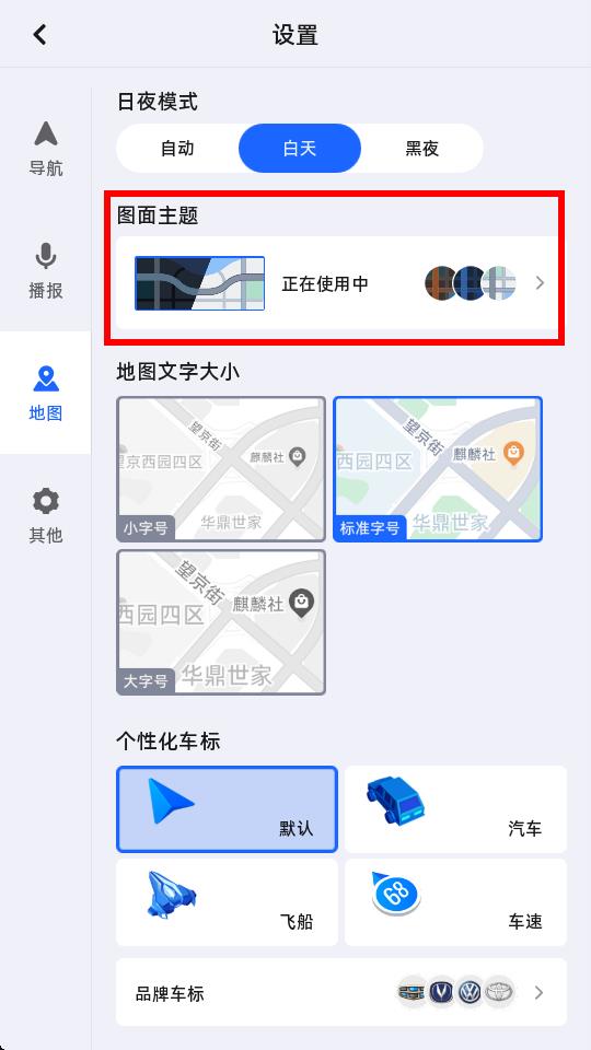 4、在地圖設(shè)置界面,找到圖面主題選項(xiàng)并點(diǎn)擊,進(jìn)入圖面主題選擇界面。