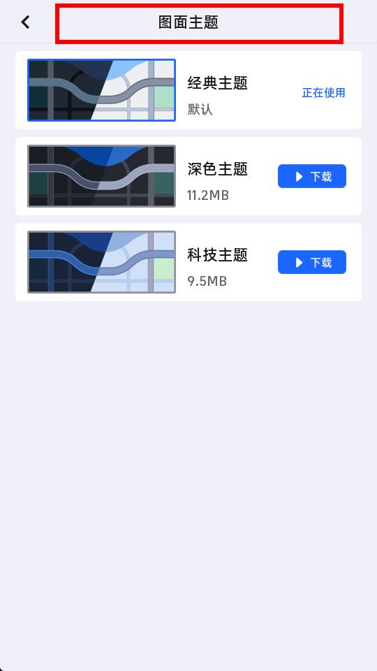 5、在圖面主題選擇界面,可選擇經(jīng)典主題、深色主題、科技主題等,根據(jù)需要點(diǎn)擊對(duì)應(yīng)主題旁的下載并應(yīng)用,即可完成設(shè)置。