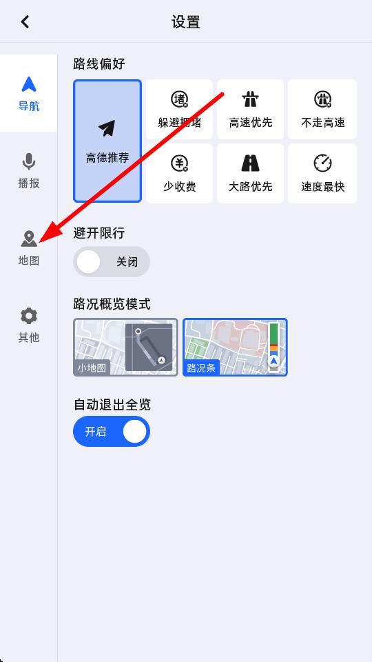 3、在設(shè)置頁面,點(diǎn)擊左側(cè)地圖選項(xiàng),進(jìn)入地圖相關(guān)設(shè)置界面。