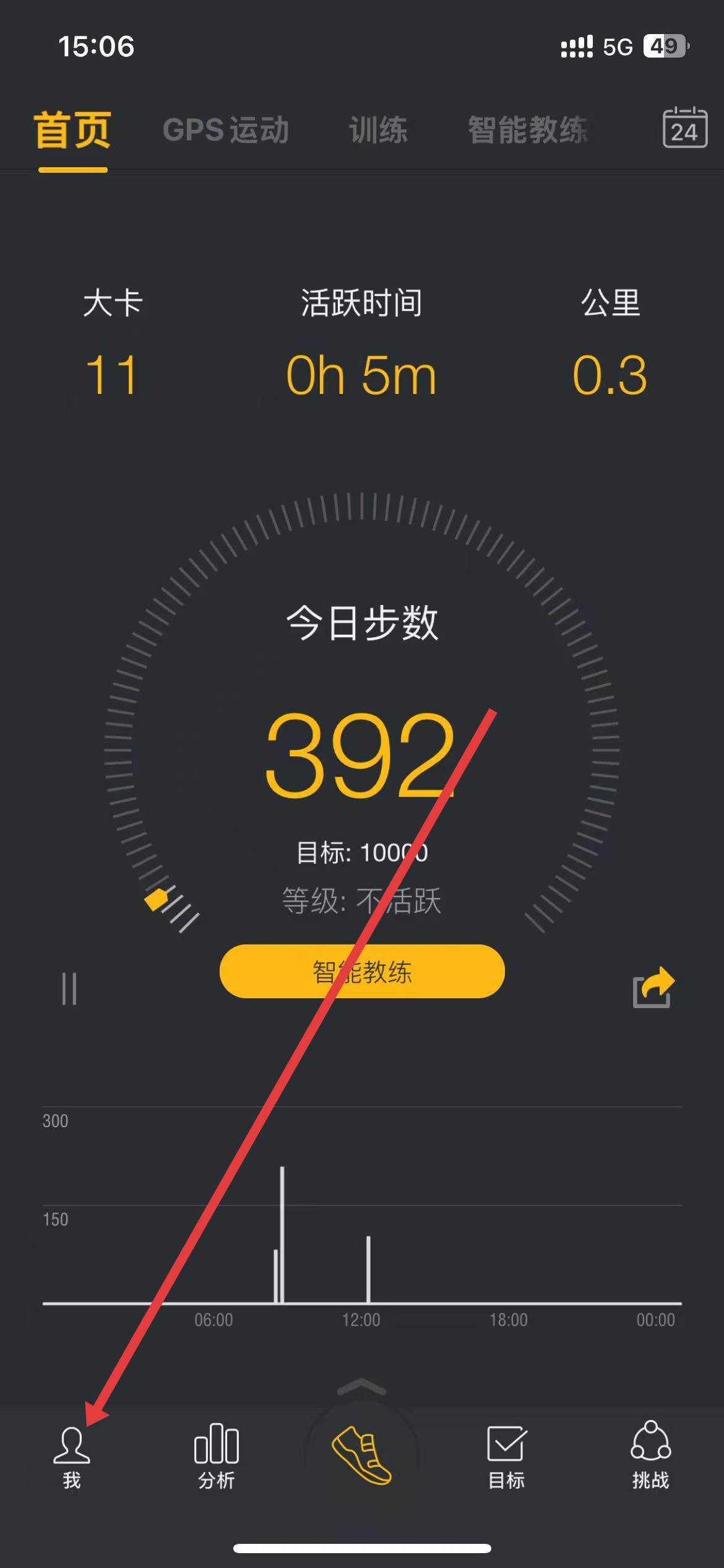 1、打開動動計步器app,點擊底部導(dǎo)航欄中的我。