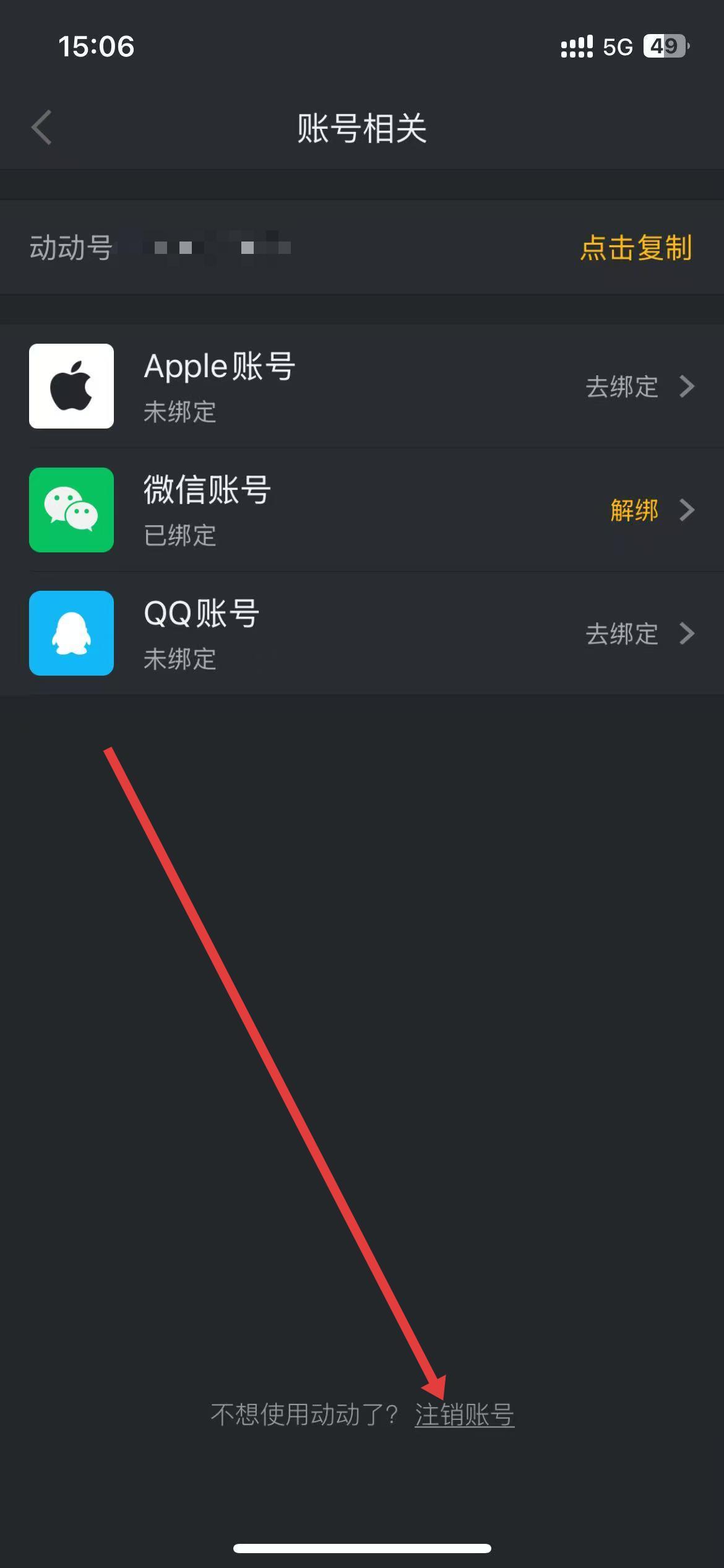 4、找到并點擊注銷賬號,按照提示完成賬號注銷操作。