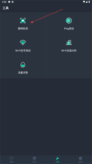3、在工具的頁(yè)面內(nèi),找到并點(diǎn)擊蹭網(wǎng)檢測(cè)的功能按鈕。