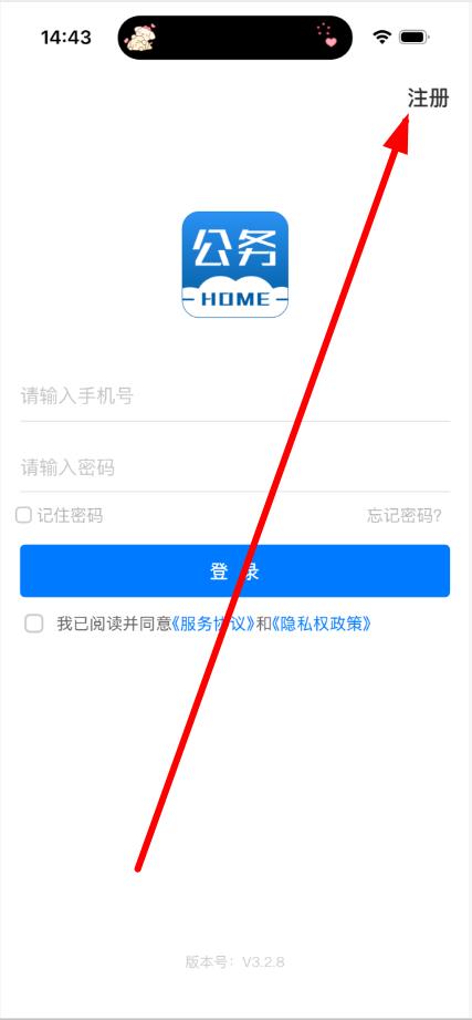 1、打開(kāi)公務(wù)之家app,在登錄界面點(diǎn)擊右上角注冊(cè)選項(xiàng),進(jìn)入注冊(cè)頁(yè)面。