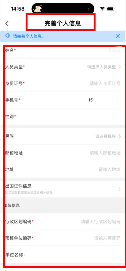 請(qǐng)從單位管理員或財(cái)務(wù)人員處獲取單位的行政區(qū)劃編碼(6位數(shù)字)和預(yù)算單位編碼(6位數(shù)字),在APP完善個(gè)人信息頁(yè)面分別填入【行政區(qū)劃編碼】和【預(yù)算單位編碼】欄目,系統(tǒng)將自動(dòng)匹配并列出您的單位。