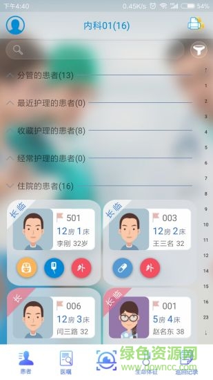 智能護理系統(tǒng)app是為醫(yī)護人員提供的一款病人身體健康指數(shù)檢測的應用軟件,利用這款軟件,每天不用過多的詢問病人就能自行對患者身體進行檢測,軟件會為你生成圖表顯示,讓你清楚的了解病人身體的變化情況,功能超多而且非常的實用,需要的用戶就來綠色資源王下載吧!