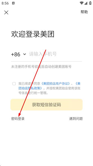 2、在登錄界面,找到并點(diǎn)擊密碼登錄文字按鈕。