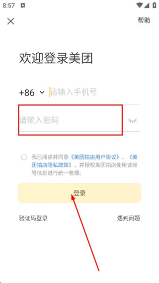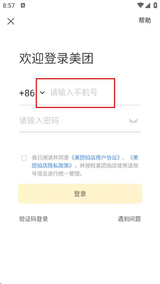 3、在密碼登錄頁(yè)面,輸入需要登錄的手機(jī)號(hào)。