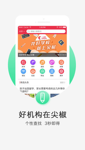尖椒教育app是一款幫助你找到誠信可靠的名師輔導(dǎo)教學(xué)機(jī)構(gòu)的點(diǎn)評軟件,讓在線教育更加放心,提供中國教育機(jī)構(gòu)大數(shù)據(jù)分享,覆蓋所有教育平臺,綠色資源網(wǎng)誠意推薦!
