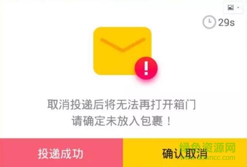 5.取消投遞(因包裹過(guò)大無(wú)法放入柜中,需取消投遞)。如確認(rèn)取消,系統(tǒng)不會(huì)再次開(kāi)箱,直接結(jié)束此訂單?;蛘?0秒倒計(jì)時(shí)結(jié)束,系統(tǒng)默認(rèn)投遞成功訂單上傳。