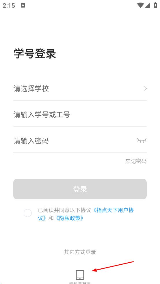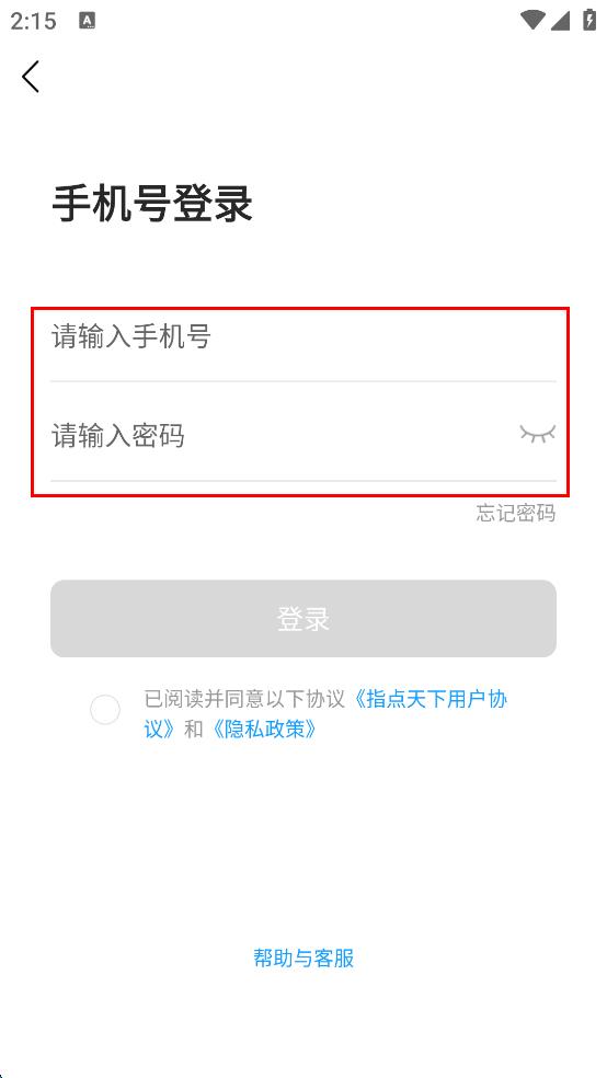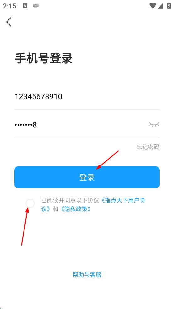 4、填寫好手機號和密碼后,勾選已閱讀并同意以下協(xié)議指點天下用戶協(xié)議和隱私政策選項,然后點擊“登錄”按鈕,即可嘗試登錄指點天下app。